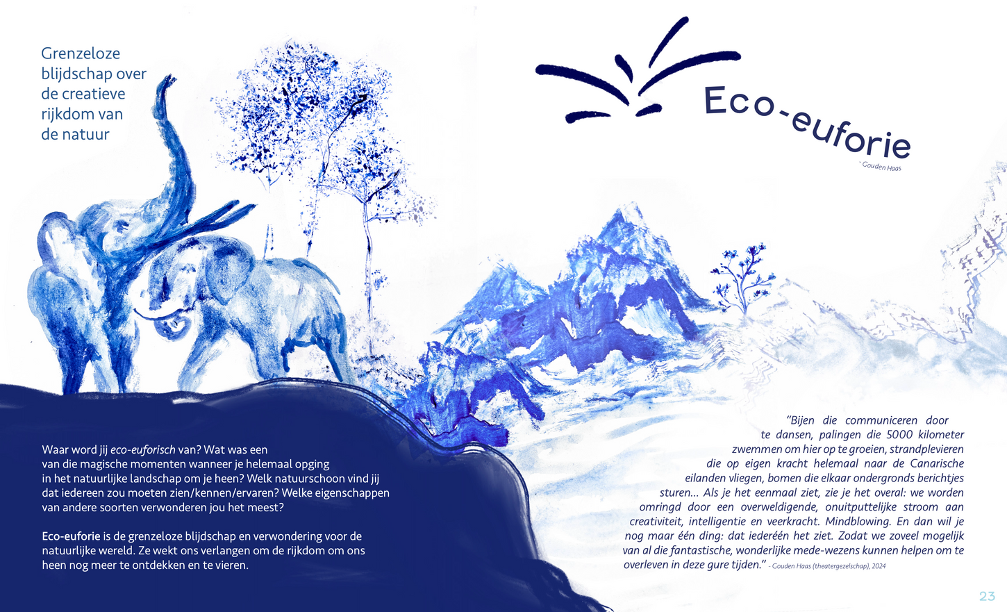 In het landschap van ‘Schemertij’ liggen verschillende vertrekpunten die elk een een aspect belichten van de overgang naar een ecocentrischer tijdperk. Ze bieden een startpunt voor het herontdekken van onze relatie met de natuurlijke wereld.